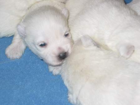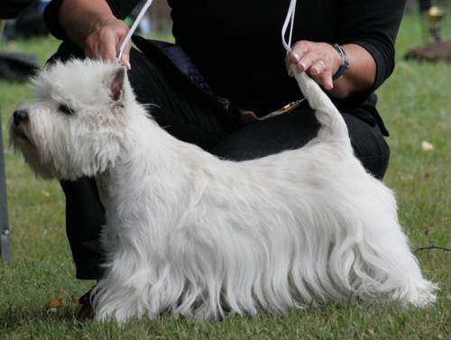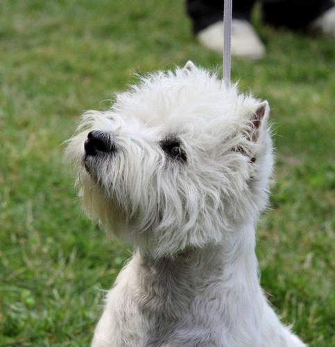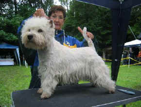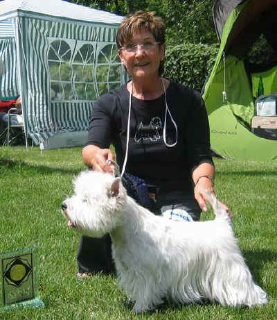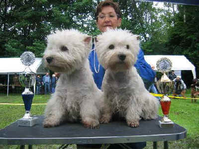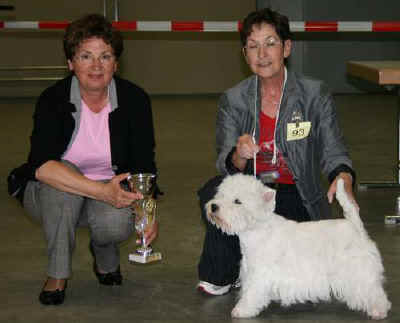 süße kleine Gipsy hat wieder vv1 bekommen; im Wettbewerb um den besten Westie-Puppy hat sie gegen einen kleinen Rüden verloren, der