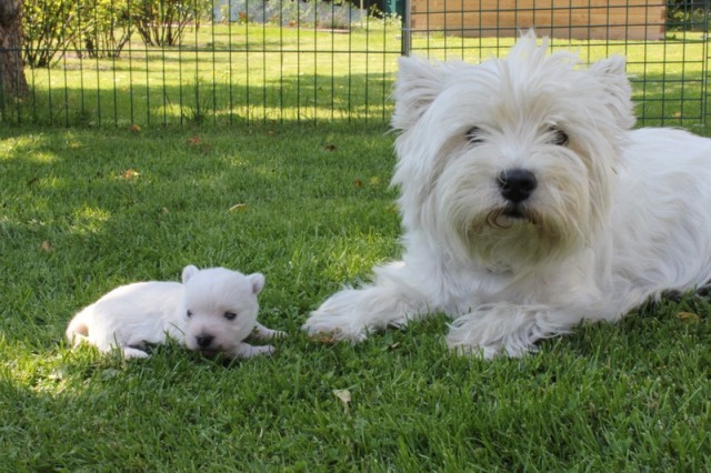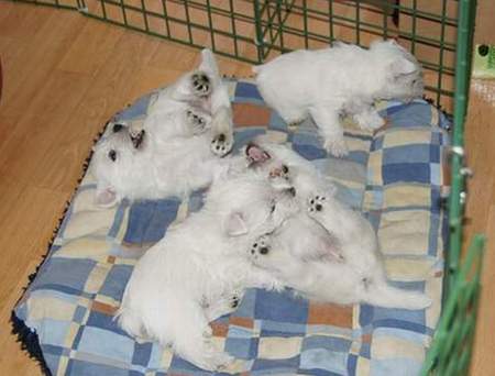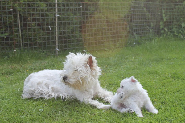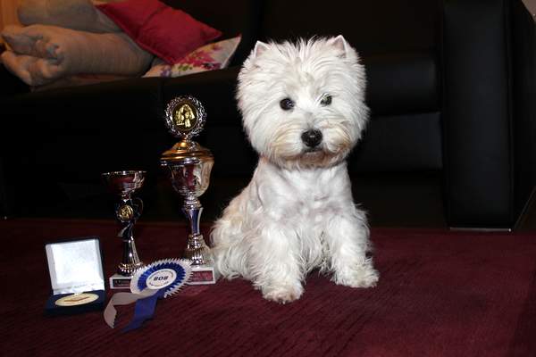 Gipsy erhielt auf der Internationalen Ausstellung in München V1, JgdCAC und JgdVDH - sie erfüllt damit die Bedingungen für den Titel Jugendchampion-VDH. Coco machte auf der Internationalen Ausstellung in ihrer Klasse V1, VDH, ResCACIB, ResCAC - ein schöner Erfolg, sie ist nach ihren Welpen wieder in bester Kondition. Am nächsten Tag auf der Terrier-Spezialausstellung wurden Gipsy keine Anwartschaften zuerkannt. Dafür brillierte sie auf der Zuchtzulassungsprüfung, und sie war der einzige schußfeste Westie dort, wie sie überhaupt den ganzen Trubel völlig gelassen wegsteckte.