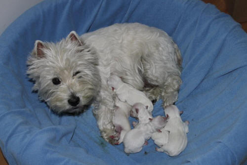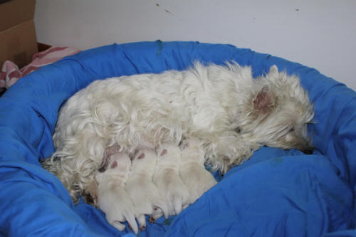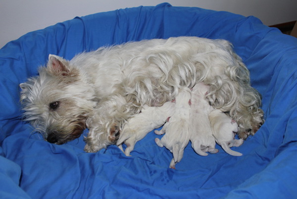 26. 3. 2014: Heute Nacht hat Gipsy 5 Welpen geboren, 2 Rüden und 3 Mädels.