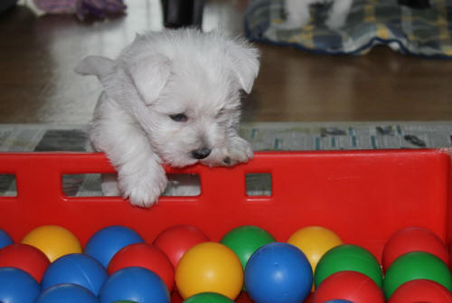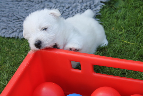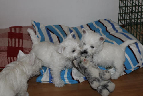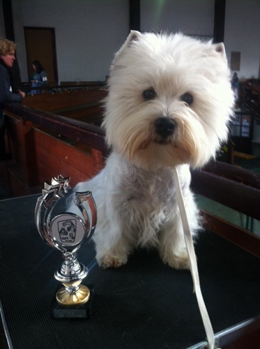 Unsere kleine Lynn setzt ihre erfolgreiche Ausstellungskarriere fort. Auf der Schau in Erfurt erhielt sie V1, JgdCAC- und JgdVDH-Anwartschaften und sie wurde Bester Westie-Junghund. Damit unser Höhenflug aber nicht zu doll wird, lief es am zweiten Ausstellungstag nicht so gut, Lynn erhielt trotz top Beurteilung "nur" V3. Aber wir sind stolz auf unsere Kleine!