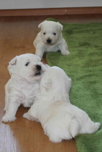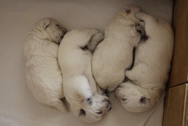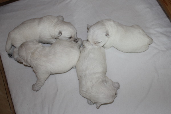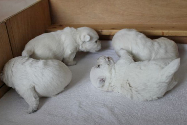 Die Welpen wachsen unheimlich schnell und sie unternehmen bereits erste, noch wacklige Gehversuche auf ihren vier Beinchen. Auch spielen fängt schon an, Spaß zu machen.
