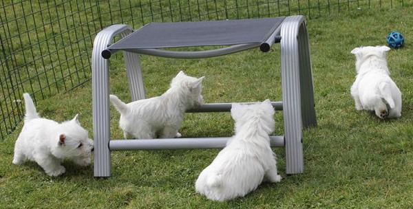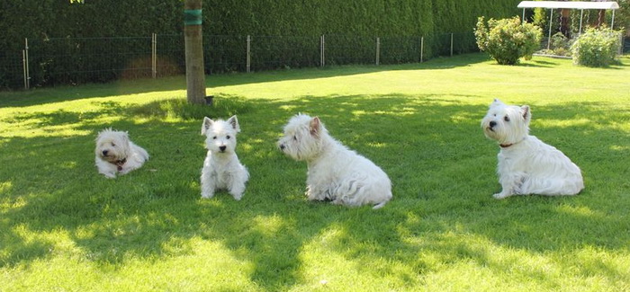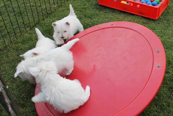 Die Welpen sind jetzt 4 Wochen alt und durften bei sonnigem und warmen Wetter heute das erste Mal an die frische Luft.